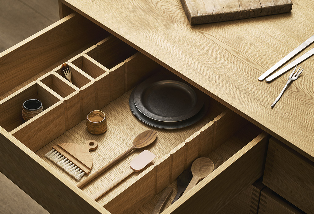 At Garde Hvalsøe, even the smallest spaces are crafted with the same care as the largest. Our drawer interiors in solid wood are designed to support both function and feeling – from handcrafted cutlery trays and precisely fitted dividers to flexible, adjustable inserts.