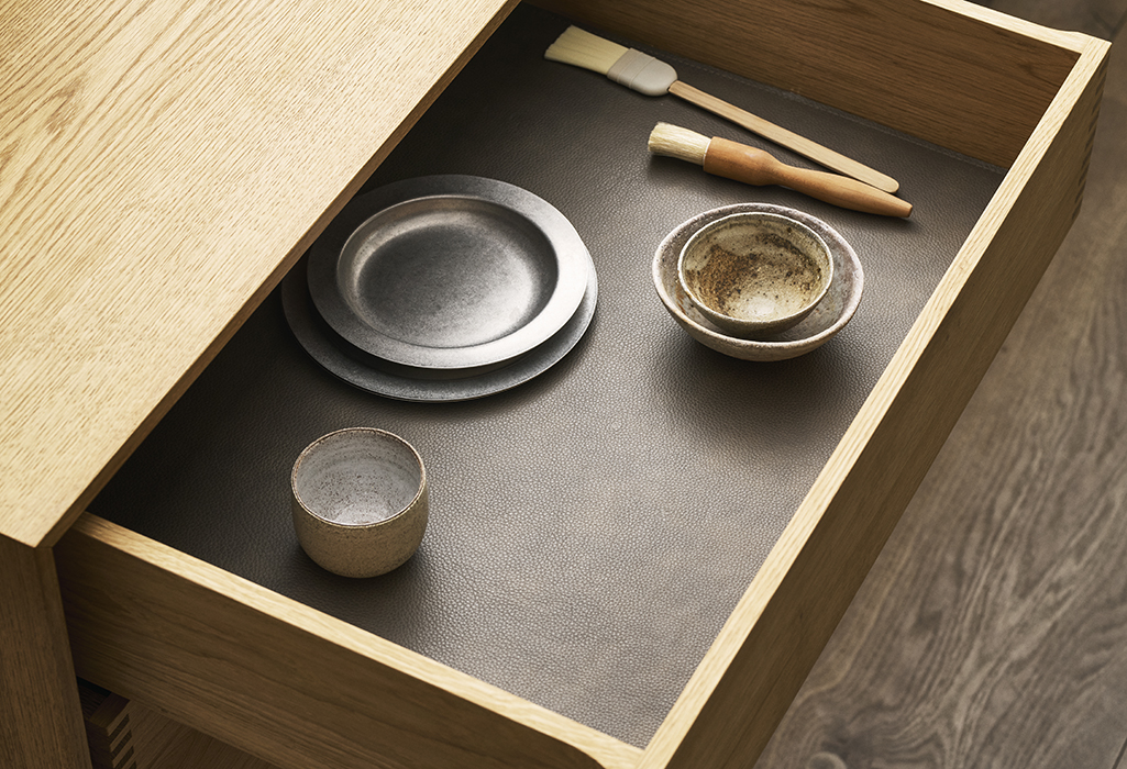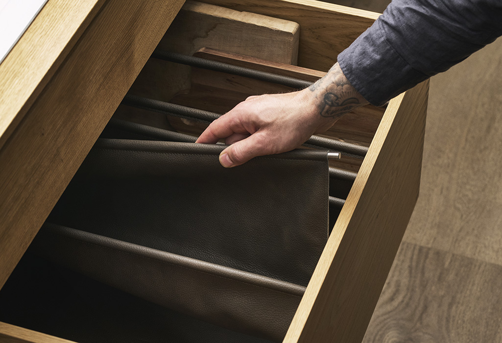 We offer a wide selection of cutlery inserts, fixed dividers, adjustable partitions and leather mats – each crafted from materials that match your furniture and your needs.